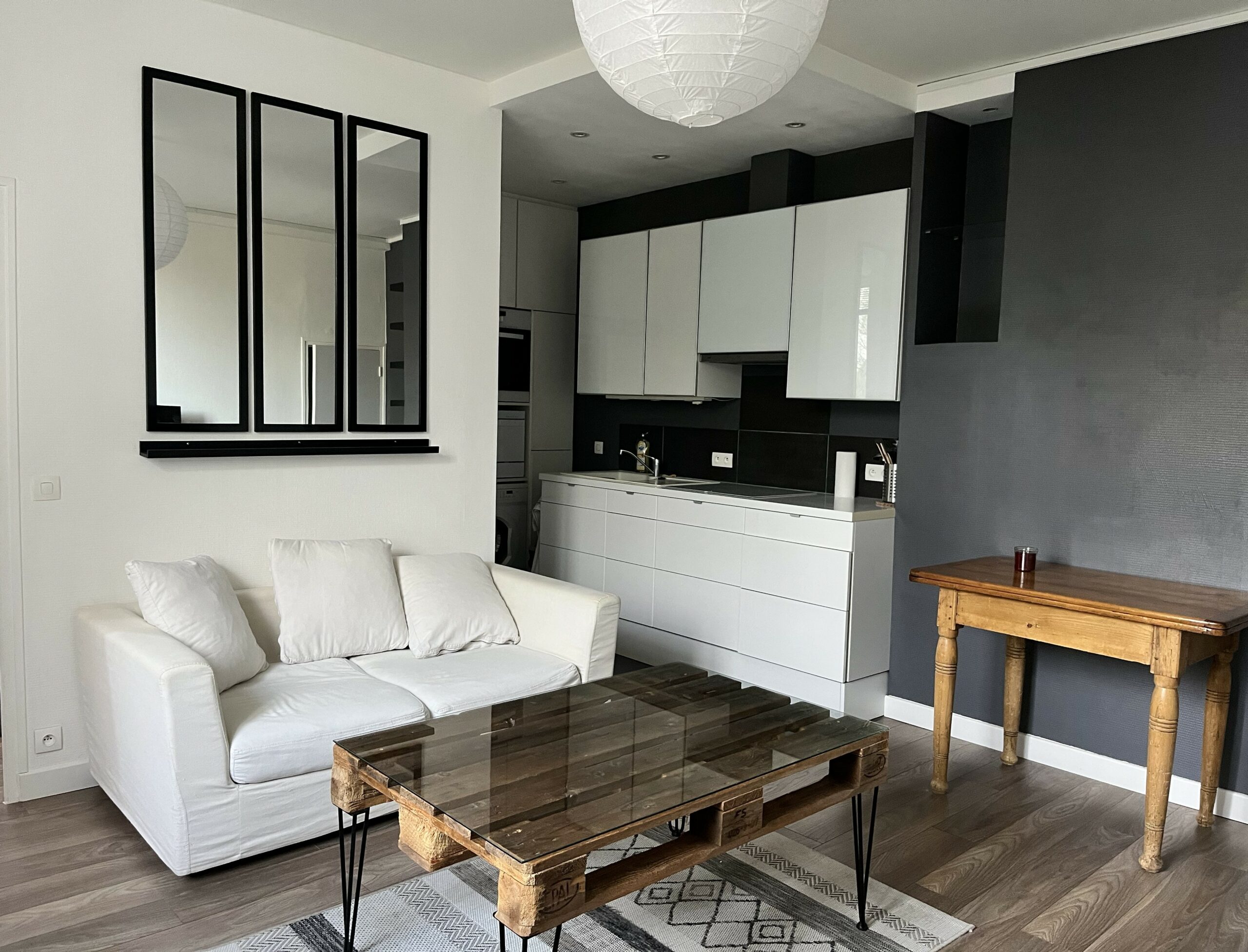 Appartement de type 2 pièces entièrement meublé composé comme suit : séjour, cuisine ouverte aménagée et équipée, WC, une chambre avec salle de bain.